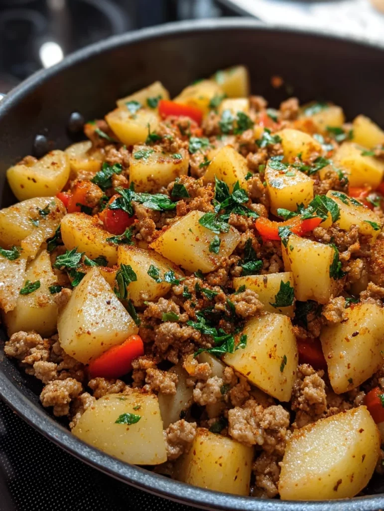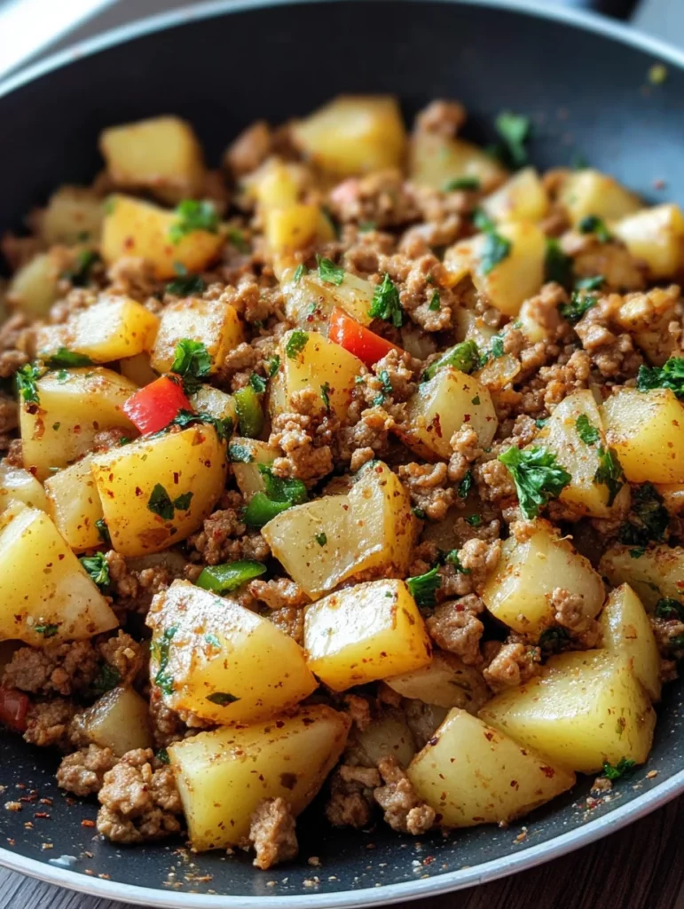 A quick and flavorful dinner recipe featuring ground turkey and diced potatoes, perfect for a busy weeknight.