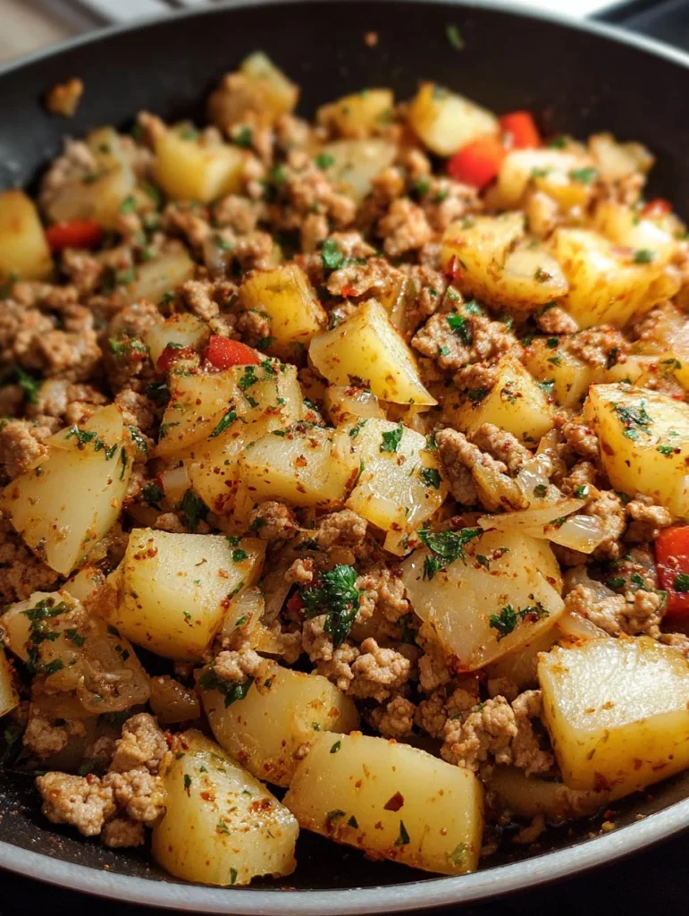 A quick and flavorful dinner recipe featuring ground turkey and diced potatoes, perfect for a busy weeknight.