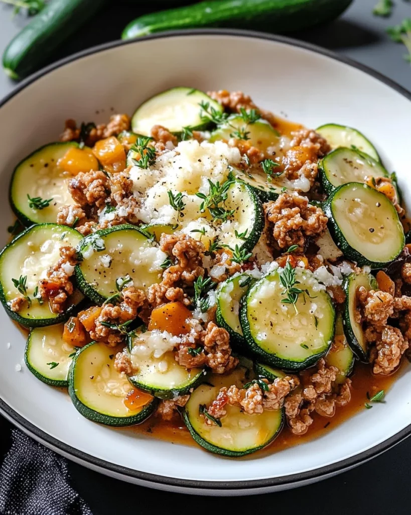 A quick and delicious skillet dish featuring ground turkey and zucchini, perfect for a healthy meal.