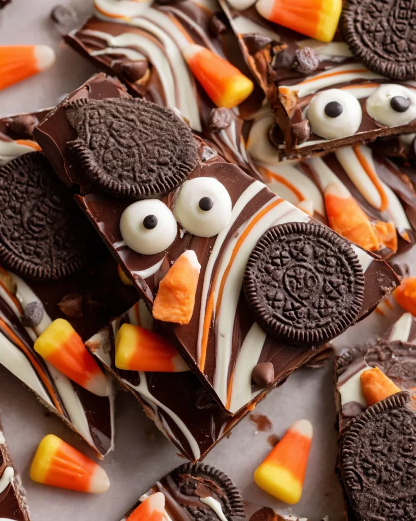 Halloween Chocolate Bark is a fun and festive treat perfect for celebrating the spooky season. It’s easy to make and features a delightful combination of dark and white chocolate, along with candy corn and Oreos for a crunchy texture.