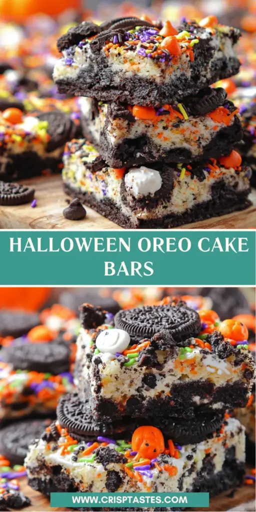 Making these Halloween Oreo Cake Bars is more than just a baking project; it’s a chance to create sweet, festive moments with your loved ones. Each bite is a delightful explosion of flavors, combining the beloved crunch of Oreos with the soft, airy texture of vanilla cake. It’s a dessert that brings smiles and warmth, perfect for sharing during this magical season. Whether you’re at a Halloween party or enjoying a cozy evening at home, these bars are sure to light up the room. So, gather your family, get baking, and savor the joy of these spooky treats together!
