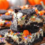 Delicious and festive Halloween-themed cake bars made with Oreo cookies and sprinkles.