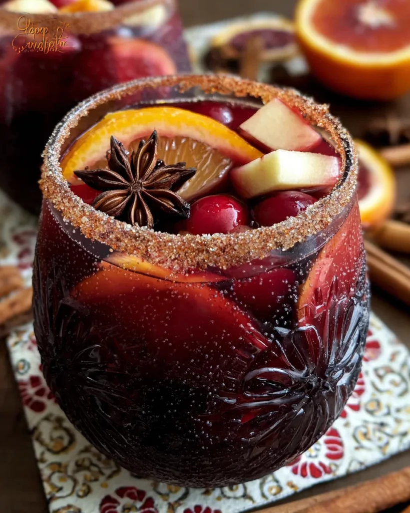 Now, it’s time to bring the flavors to life. Grab a large pitcher or punch bowl. Combine the dry red wine, sliced apple, and blood orange. Sprinkle in the sugar and ground cinnamon. Remember to stir gently until the sugar mostly dissolves. This step is crucial, as it helps the flavors marry together, creating a beautiful blend that danced in your glass!