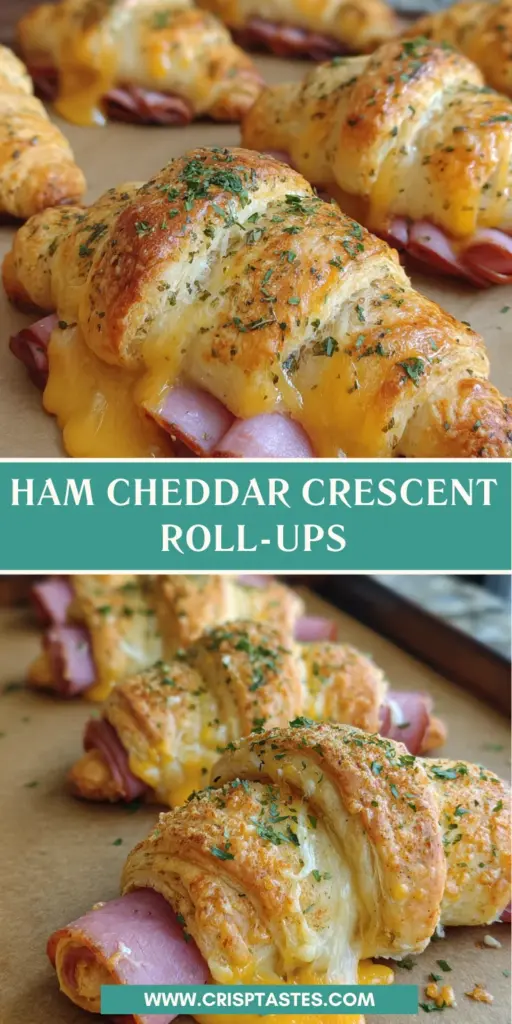 Creating these Ham Cheddar Crescent Roll-Ups is more than just preparing a snack; it’s about sharing joy and flavor with those you love. The aroma wafting through your kitchen while they bake will have everyone rushing to the table. Plus, you can whip them up in no time, making them perfect for those busy days. Watching your family devour these delightful rolls brings such happiness. So, gather your ingredients, roll up those sleeves, and let’s make some magic in the kitchen together. Cheers to delicious moments!
