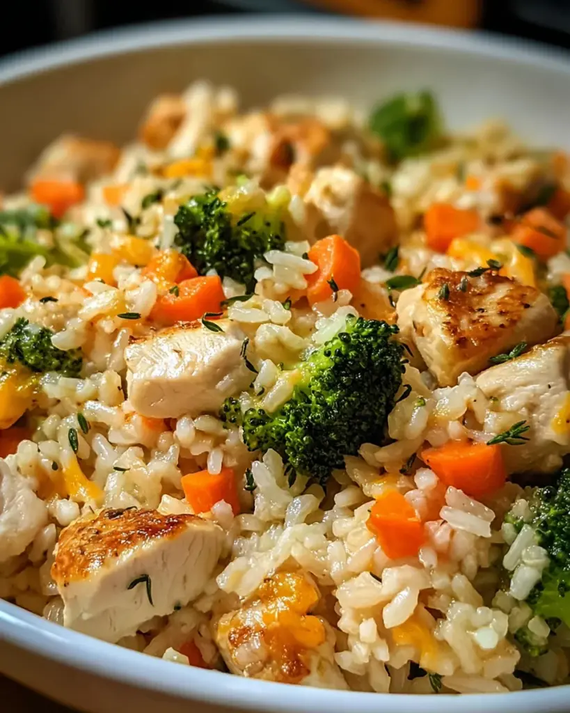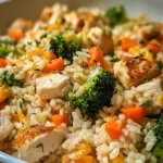 A delicious and healthy chicken and rice casserole packed with vegetables and flavorful seasonings, perfect for a hearty meal.