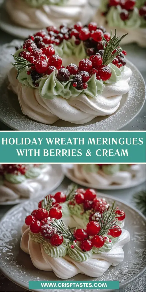 Making Holiday Wreath Meringues with Berries & Cream is not just about baking; it’s about creating joy and spreading cheer. Each fluffy, vibrant wreath brings a smile to my family’s faces, making our gatherings even more special. I cherish the laughter and stories shared around the table as we savor these delightful treats. Whether you’re hosting a holiday party or enjoying a cozy night in, these meringues are sure to be a hit. So grab your mixing bowl, and let’s make some magical memories, one delicious wreath at a time!