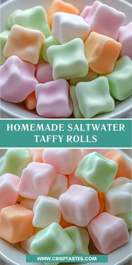 Finally, wrap each piece in wax paper to keep them fresh and prevent sticking. Place them in a bowl or share with friends. Every bite of your Homemade Saltwater Taffy Rolls will transport you back to sweet memories—not to mention, you may just start a family tradition!