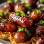 Delicious Honey Garlic Mississippi Lil’ Smokies served in crispy mini phyllo pastry cups, perfect for parties.