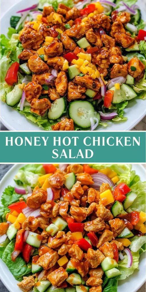 Creating this Honey Hot Chicken Salad is more than just preparing a meal; it’s about bringing joy to the table. The combination of spicy chicken and fresh veggies creates a delightful experience that everyone will love. I cherish the moments spent sharing this dish with my family, watching their faces light up with each bite. It’s a recipe that not only satisfies hunger but also warms the heart. So, whether you’re enjoying a quiet dinner or hosting friends, this salad is sure to impress. Dive in and savor the flavors; you won’t regret it!