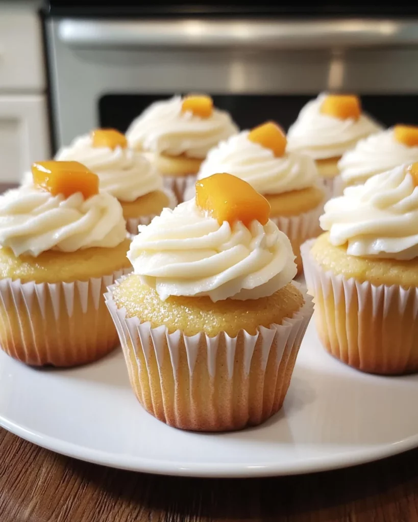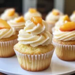 Delicious Honey Peach Cream Cheese Cupcakes topped with a creamy frosting, perfect for any occasion.