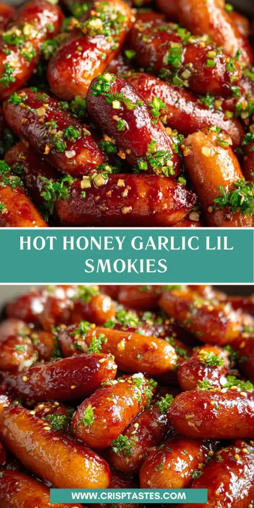 A delicious recipe for Hot Honey Garlic Lil Smokies that combines savory cocktail sausages with a sweet and spicy sauce.