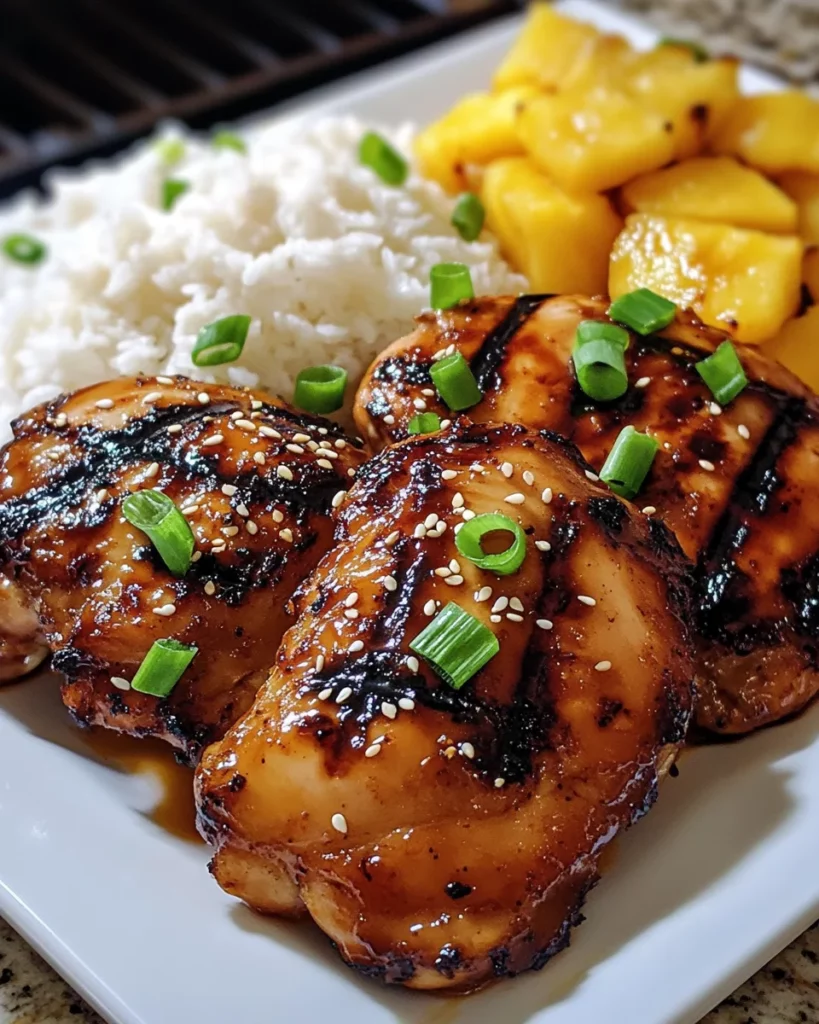After grilling, let the chicken rest for 3 to 5 minutes. This helps lock in those juicy flavors. Now, slice the chicken and serve it over a bed of fluffy white rice. Garnish with chopped green onions for a fresh touch. If you’re feeling fancy, add some grilled pineapple slices on the side for an extra burst of flavor. Voilà! You’ve just created a delightful dish that’s sure to impress!