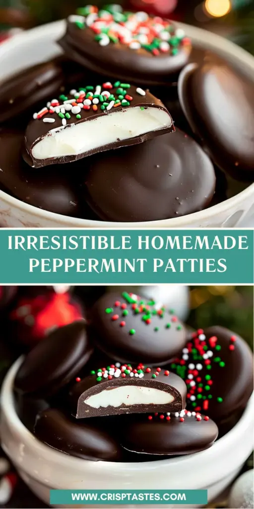 Creating these Irresistible Homemade Peppermint Patties has been a delightful journey that fills my kitchen with wonderful aromas and my heart with joy. There’s something so special about sharing these treats with family and friends, especially during the holidays. The sense of accomplishment you’ll feel after making them is truly satisfying. Plus, they’re a perfect way to brighten up a busy day! I hope these minty delights become a cherished recipe in your home as they have in mine. After all, nothing beats a homemade treat that brings smiles and sweet memories!