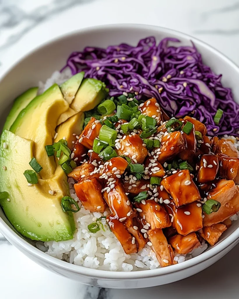 If you want to take it up a notch, consider drizzling some extra soy sauce or a spicy mayo on top for an extra zing! Serve your creation immediately, and watch as everyone digs in with a smile. This bowl is more than just food; it’s a celebration of flavors and colors!