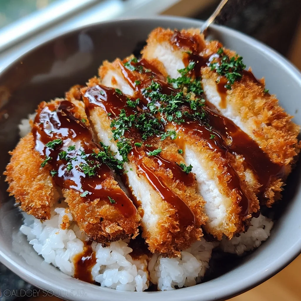 - Assemble bowls by adding cooked rice, sliced cutlets, and a generous drizzle of tonkatsu sauce. Garnish with parsley or green onions, if desired. Serve immediately.