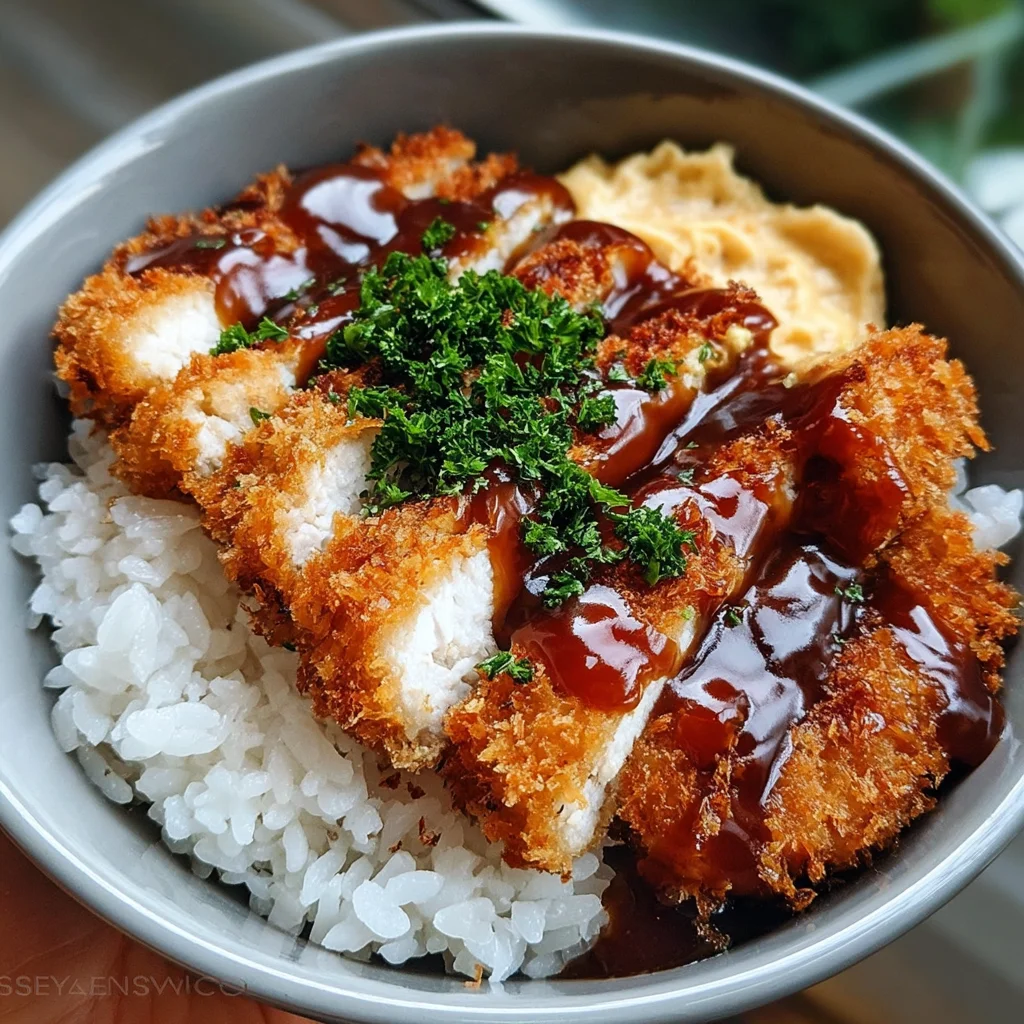 - Assemble bowls by adding cooked rice, sliced cutlets, and a generous drizzle of tonkatsu sauce. Garnish with parsley or green onions, if desired. Serve immediately.