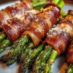 Just when you think it’s done, we’ll elevate the flavor! Take the baking sheet out of the oven, and sprinkle freshly grated Parmesan cheese over each bacon bundle. Return them to the oven for 2 to 3 more minutes, until the cheese melts and turns a lovely golden brown. Just imagine that bubbling goodness!
