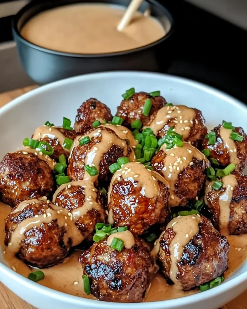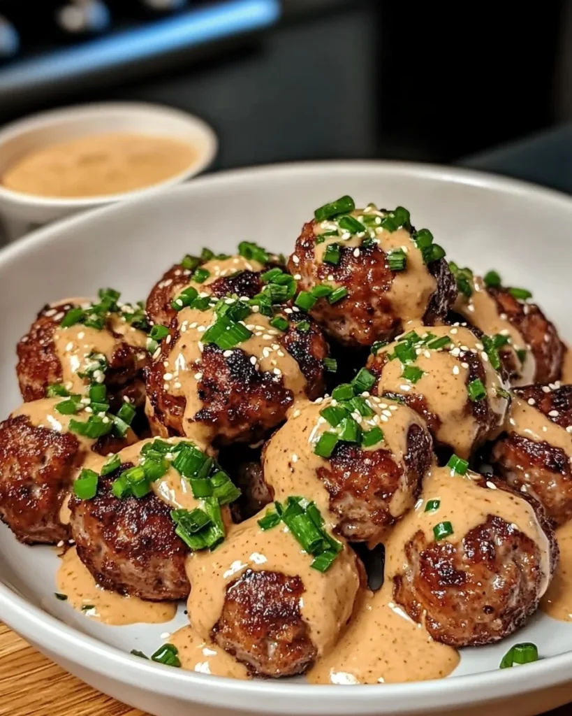 Korean BBQ Meatballs with Spicy Mayo are a delightful fusion of savory and sweet flavors, enhanced by a creamy and spicy dip.