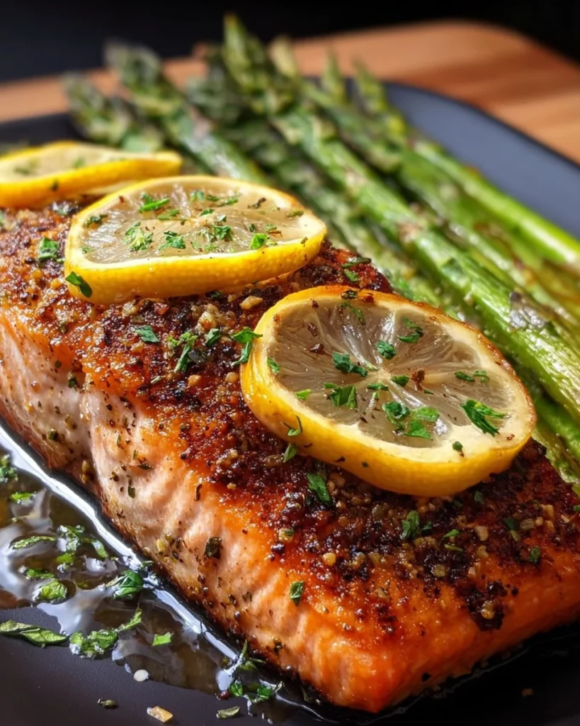 With everything seasoned just right, it’s time to bake! Slide the baking sheet into the preheated oven and let it work its magic. Bake for 12–15 minutes, depending on the thickness of your salmon fillets. You’ll know it’s done when the fish flakes easily with a fork and the asparagus is tender-crisp. The beautiful aroma wafting through your kitchen will have your family racing to the table!