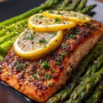 Tender oven-roasted salmon fillets with bright lemon, fresh dill, and perfectly roasted asparagus – a quick, healthy, and delicious dish.