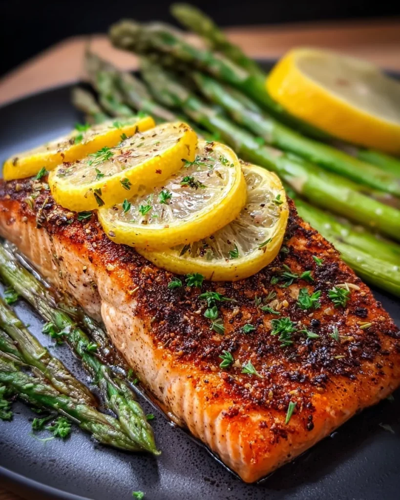 - Plate the salmon with roasted asparagus, garnish with fresh dill and lemon slices. Serve with rice, potatoes, or quinoa for a complete meal.