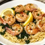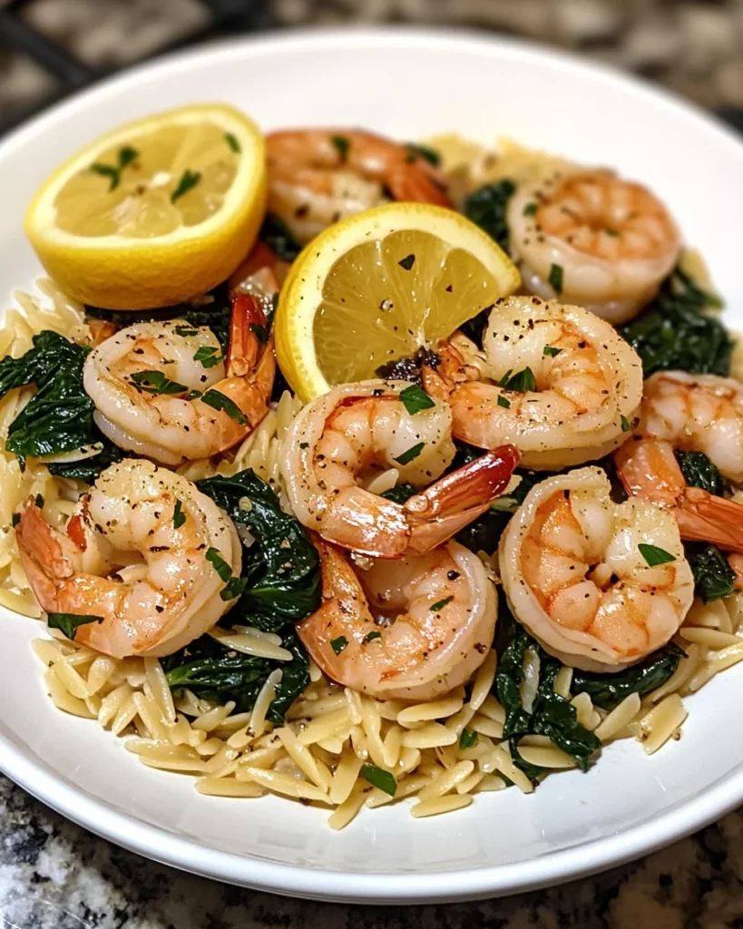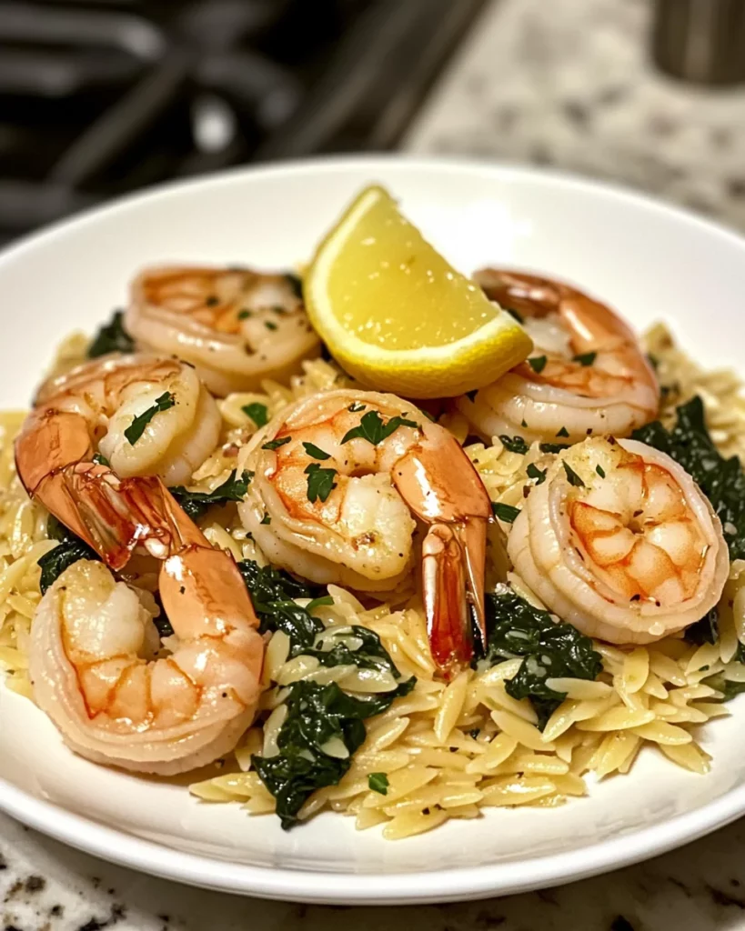 A delicious and easy-to-make lemon garlic shrimp with spinach orzo dish that transforms dinner into a delightful experience.
