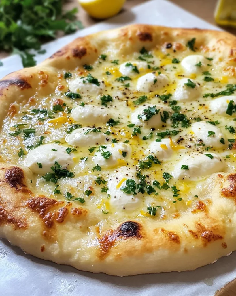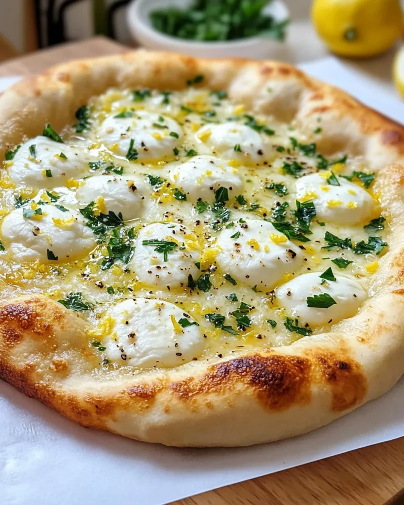 A delightful lemon-flavored pizza that adds a zesty twist to the classic pie.