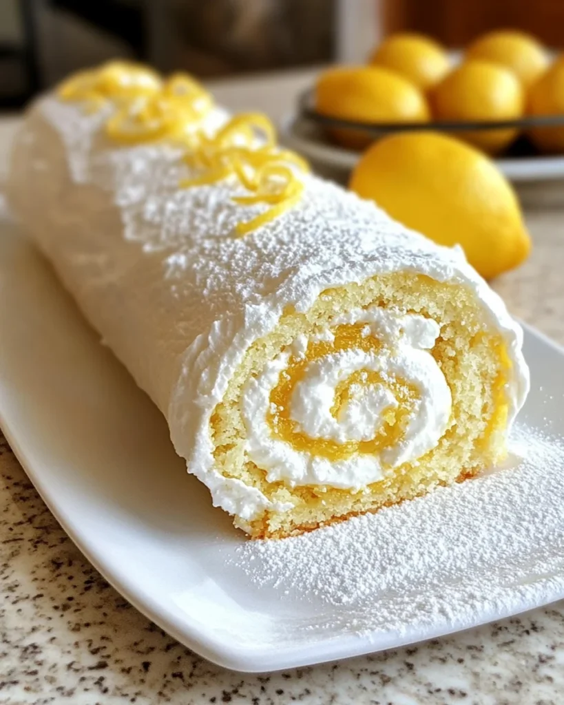 A delightful lemon roll cake that is light and fluffy, perfect for any occasion.
