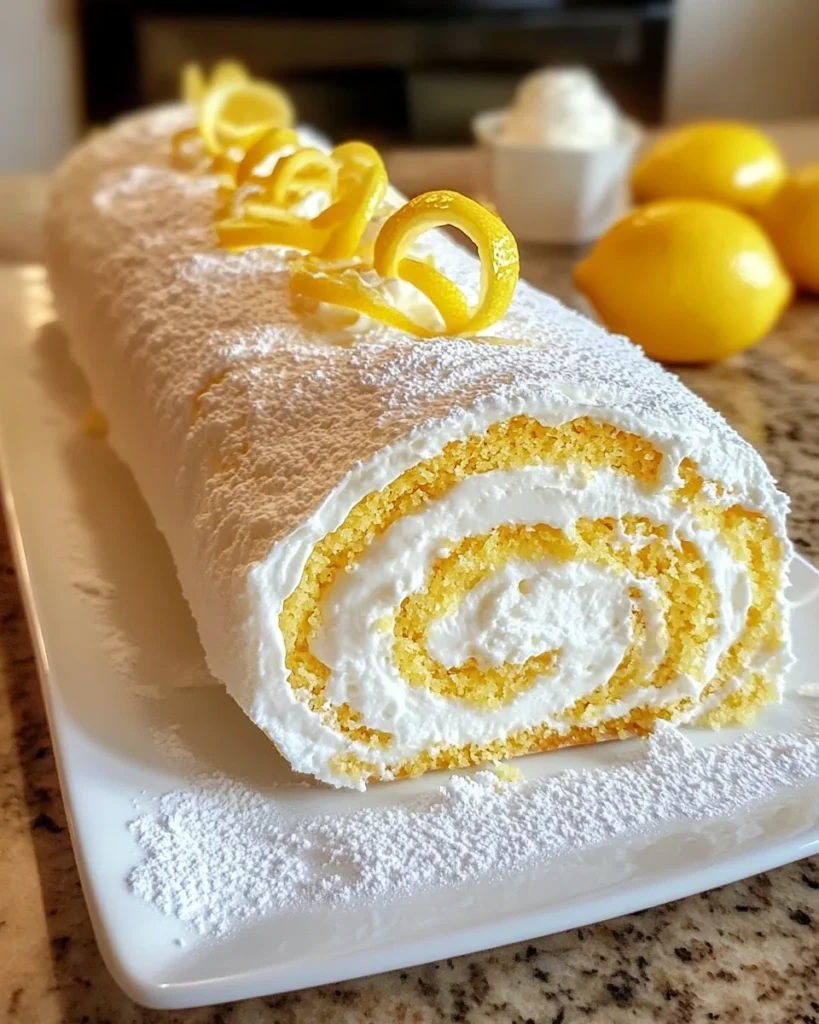 A delightful lemon roll cake that is light and fluffy, perfect for any occasion.