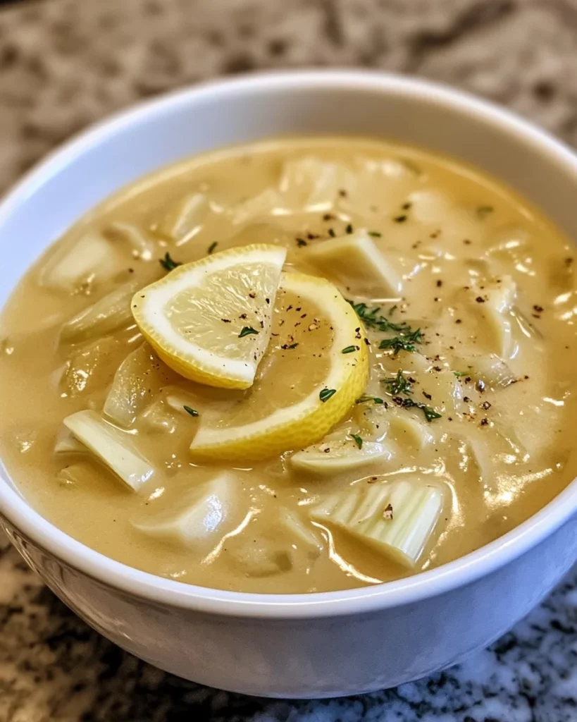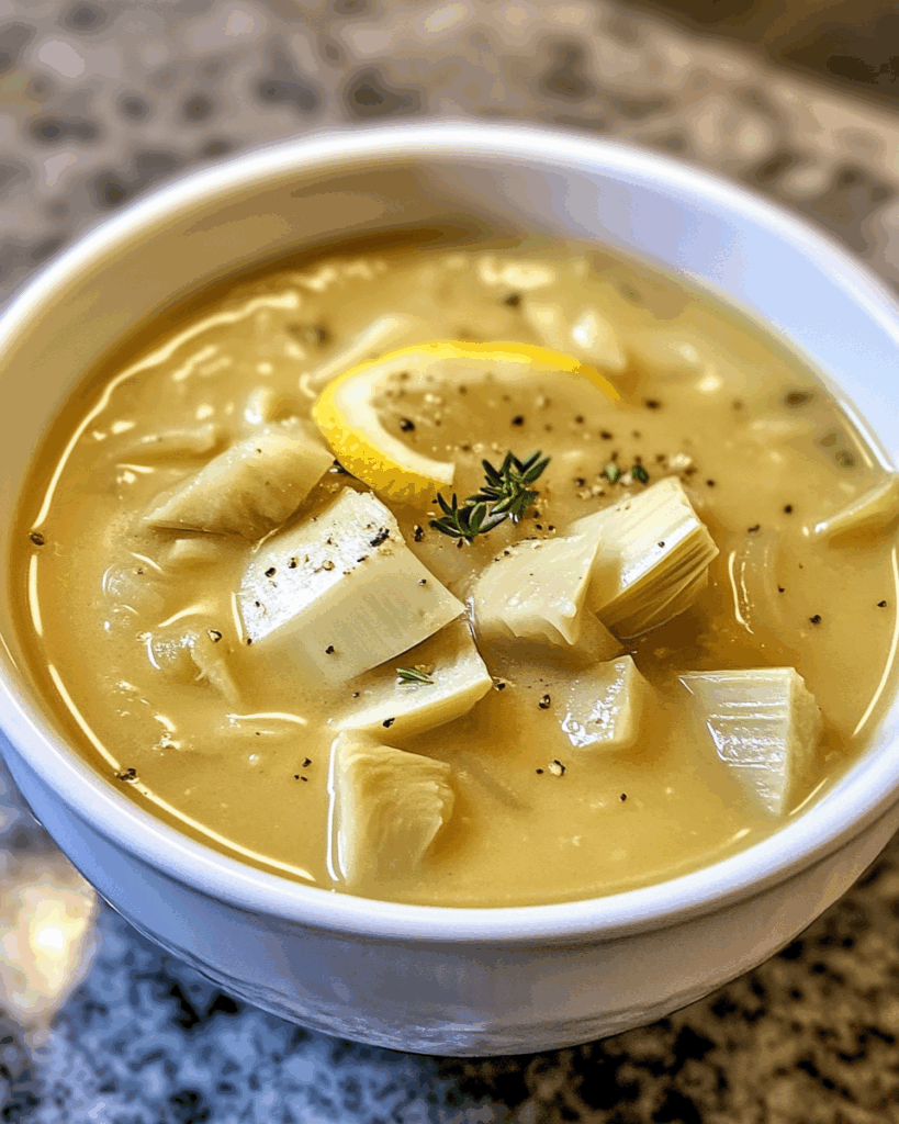 A creamy and flavorful lemony artichoke soup that is perfect for a comforting meal.