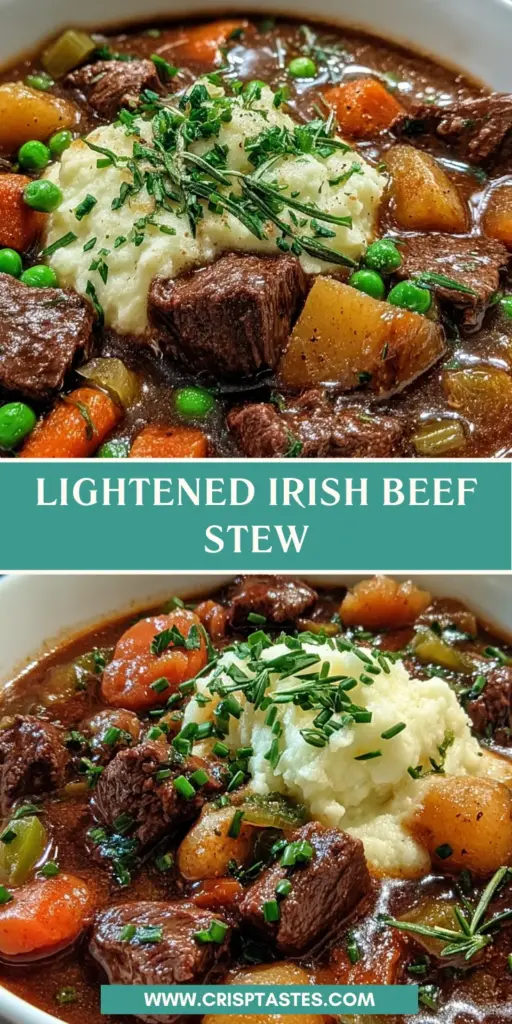 Gather around, friends! Today, I’m thrilled to share my recipe for Lightened Irish Beef Stew. As a busy mom, I know how hectic weeknights can be. This stew offers a cozy escape, providing warmth and nourishment without the guilt. Imagine sinking your spoon into tender beef and vibrant vegetables, all smothered in a rich broth. What’s even better? It’s a heart-healthy version, thanks to creamy cauliflower mash instead of heavy potatoes. This dish is perfect for impressing your loved ones or simply treating yourself after a long day. Let’s dive into this delicious adventure!