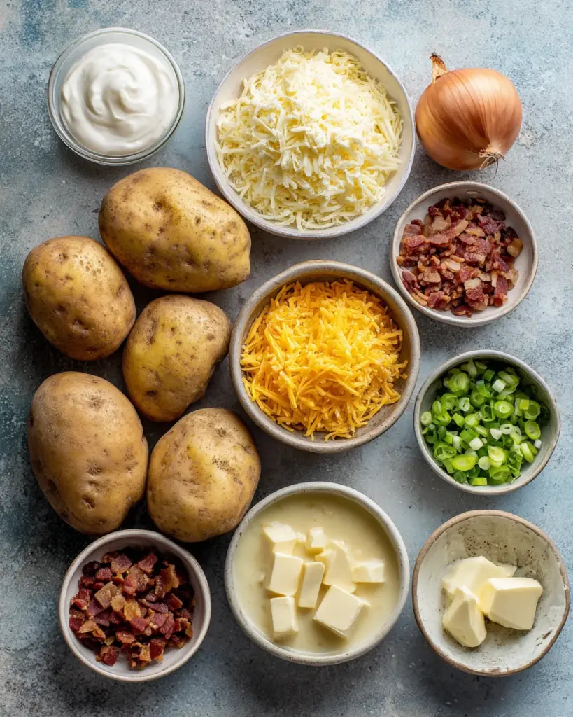 To whip up this delightful loaded potato cheese soup, you’ll need the following ingredients. Each one plays a role in adding flavor and texture, making this dish a true delight.