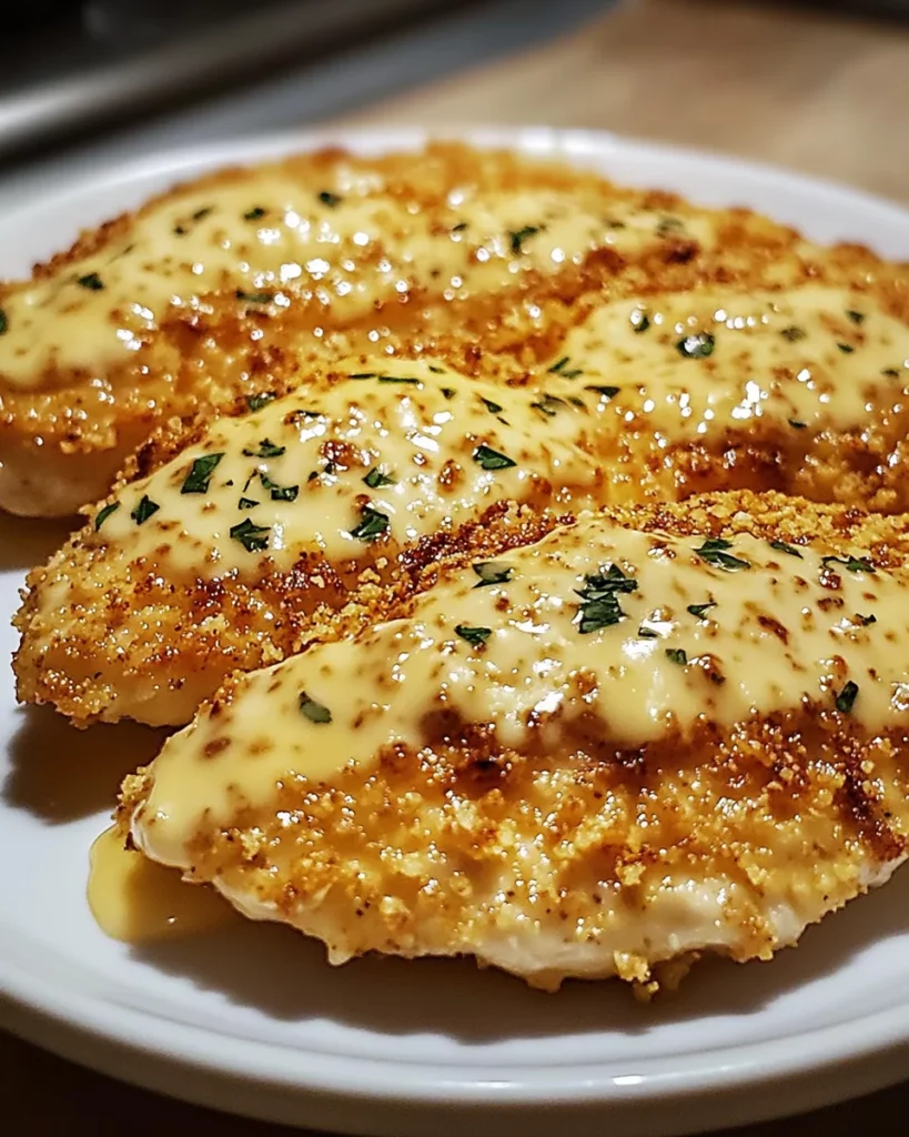 Once baked, let the chicken rest for a few minutes. This helps keep it juicy. Serve it hot with your favorite sides, like a fresh salad or steamed veggies. Remember to check that internal temperature; it’s key to ensuring your chicken is perfectly cooked. Enjoy every cheesy, crispy bite!