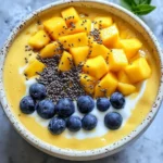 Here comes the fun part—toppings! Customize your Mango Smoothie Bowl with goodies like granola, fresh fruit slices, nuts, or seeds. Get creative! Scatter a handful of blueberries for a pop of color, or sprinkle chia seeds for added crunch. The possibilities are endless, and the best part is that each bowl can be a unique masterpiece!