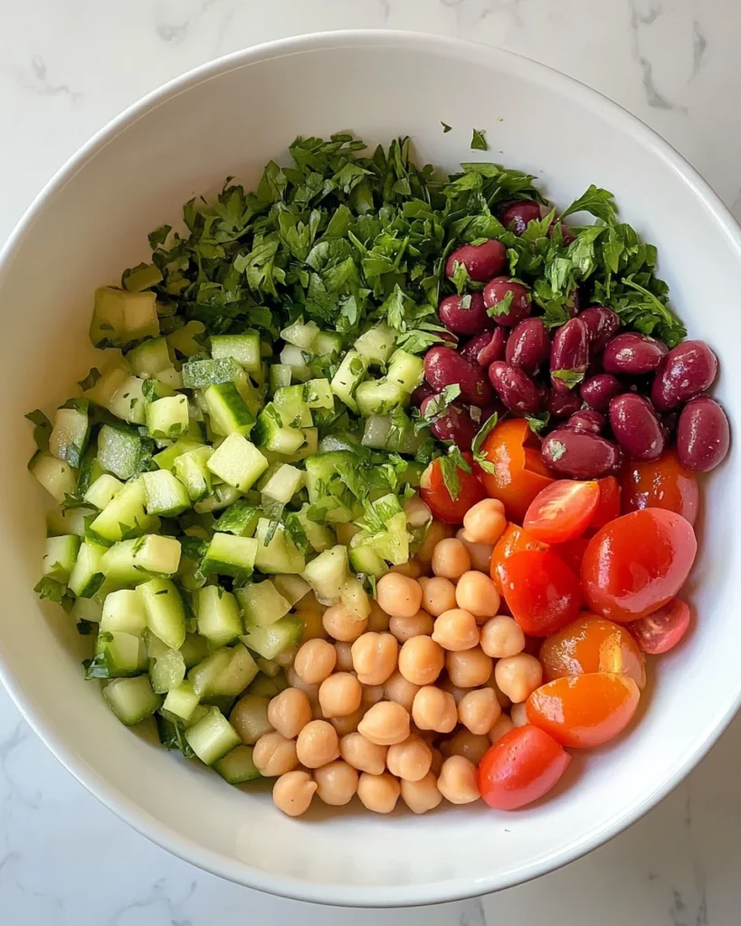 Making this Mediterranean Bean Salad is a breeze! With just a few simple steps, you’ll have a colorful, nutritious dish ready to serve. Let’s dive into the process!