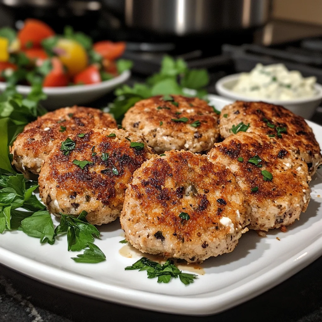 A flavorful twist on traditional chicken patties with Mediterranean herbs and spices.