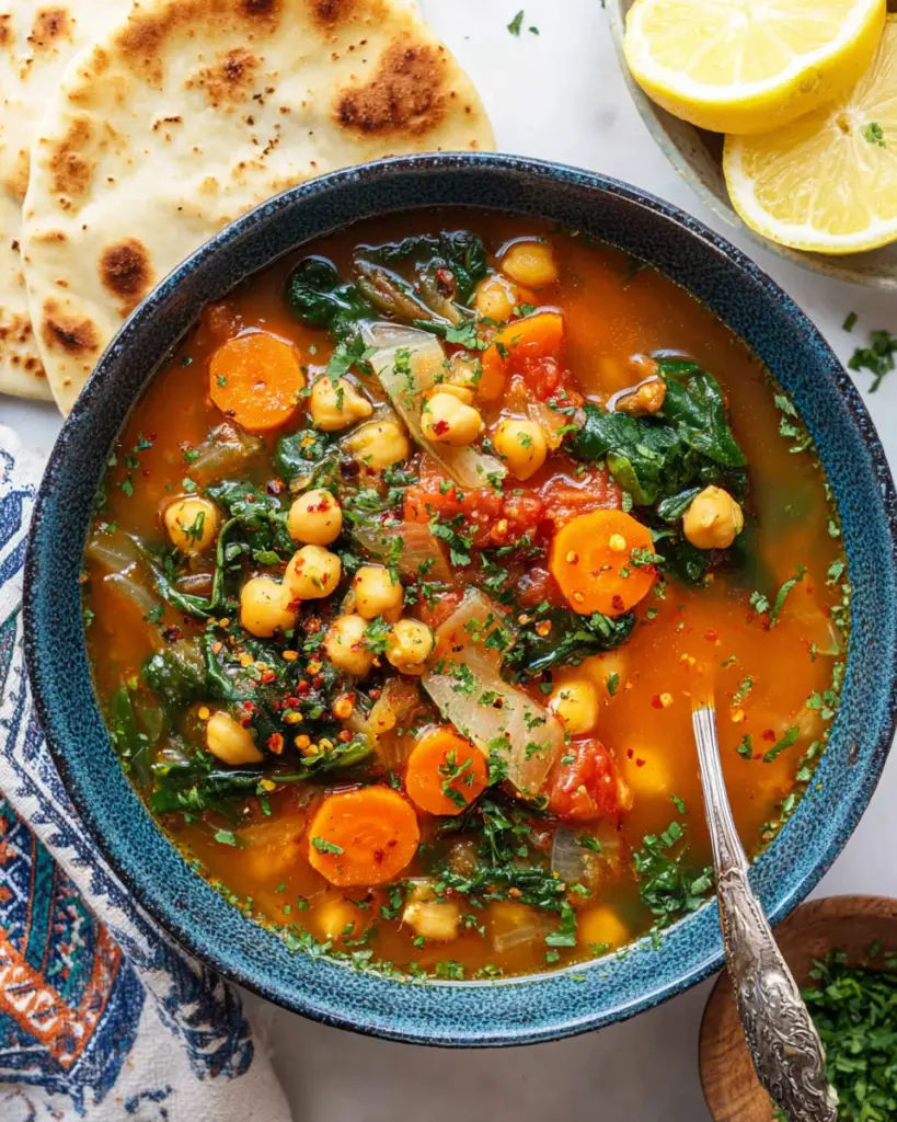 A delicious and healthy Mediterranean soup packed with chickpeas, vegetables, and flavored with herbs.