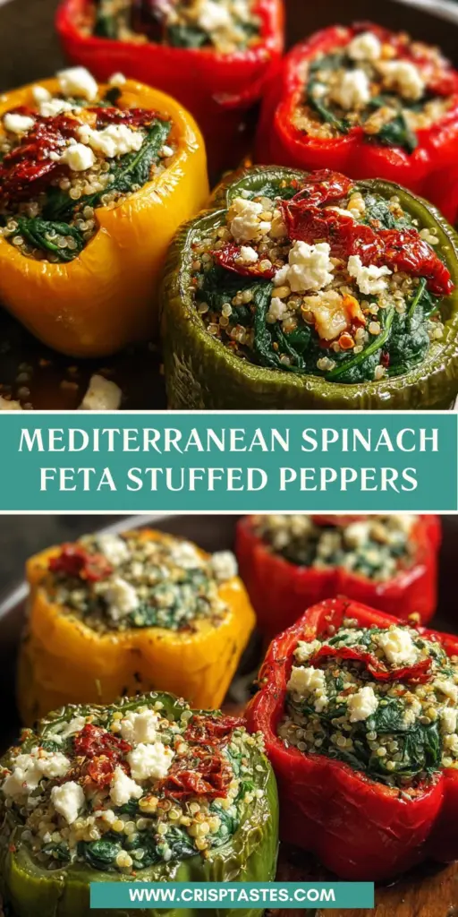 A savory Mediterranean dish featuring bell peppers stuffed with a flavorful mixture of spinach, feta cheese, and quinoa.