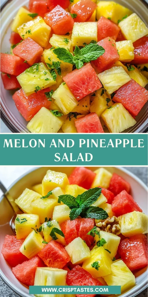 Creating this Melon and Pineapple Salad is more than just a recipe; it’s an experience that brings joy to busy days. Each bite is a celebration of summer’s vibrant flavors, reminding us to savor life’s simple pleasures. Whether you’re serving it for a family gathering or enjoying it as a light snack, this salad offers a refreshing escape from our hectic routines. I love knowing that with just a few minutes and fresh ingredients, I can whip up something that delights my family. So go ahead, dive in, and enjoy the cheerful taste of this delightful salad!