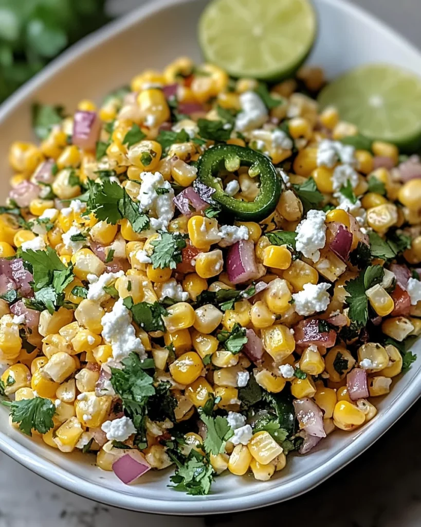 Mexican Street Corn Salad is a vibrant and flavorful salad featuring fresh corn, diced vegetables, and a creamy dressing, perfect for summer gatherings.