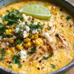 This Mexican Street Corn Soup is a delightful blend of flavors, featuring tender chicken, sweet corn, and zesty seasonings, topped with fresh cilantro and crumbled queso fresco.