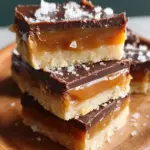 When everything is set, it’s time for the grand reveal! Sprinkle flaky sea salt on top for that beautiful finishing touch. Lift the bars out of the pan using the parchment overhang, and cut them into squares with a sharp knife. For tips, warm the knife slightly under hot water to get cleaner cuts. Voila, your Millionaire Shortbread Caramel Chocolate is ready to shine!