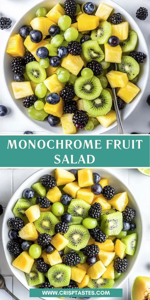 As a busy mom, I often find myself torn between whipping up something nutritious and keeping it simple. That’s where this Monochrome Fruit Salad shines! It’s not only vibrant and visually appealing but also a breeze to prepare. When you need a quick solution for a hectic day or a refreshing dish to impress your loved ones, this salad has got your back! With the delightful mix of green and dark fruits drizzled in a zesty dressing, it’s the perfect way to elevate any meal or simply enjoy a light snack.