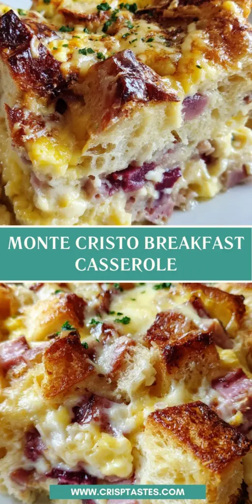The Monte Cristo Breakfast Casserole is truly a gem in my kitchen. It’s not just a recipe; it’s a warm invitation for family bonding over a delicious meal. Whether it’s a hectic weekday morning or a leisurely weekend brunch, this dish transforms any moment into something special. The blend of flavors, textures, and the joyful aroma creates a comforting atmosphere where laughter and conversations flow freely. Knowing I can prepare it the night before gives me peace of mind. So grab your ingredients, and let’s roll out this beautiful dish that’s sure to become a favorite in your home!
