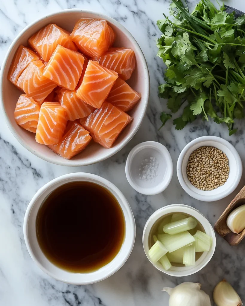 - 1 lb fresh salmon, skin removed, cut into 1-inch cubes