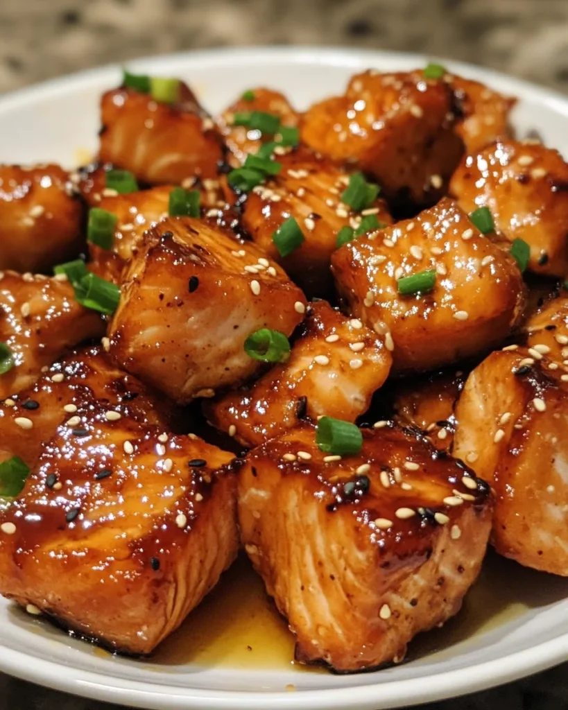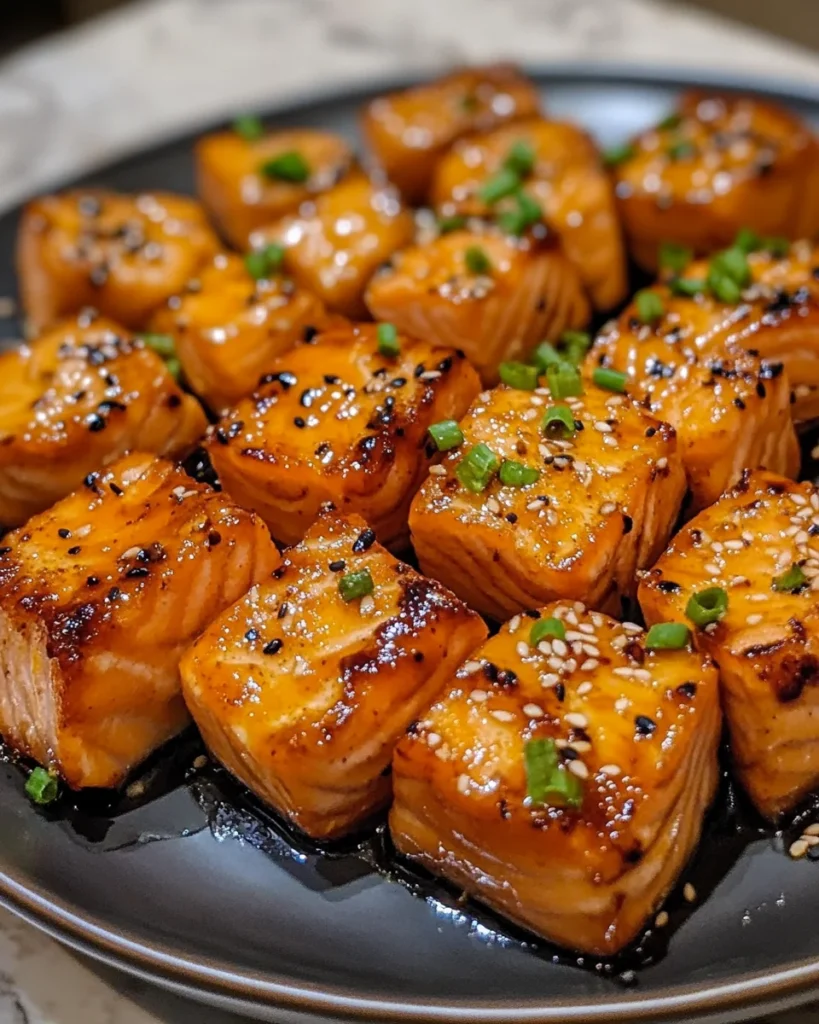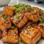 Keywords: honey garlic salmon, crispy salmon bites, salmon appetizer, healthy salmon recipe, soy glaze fish