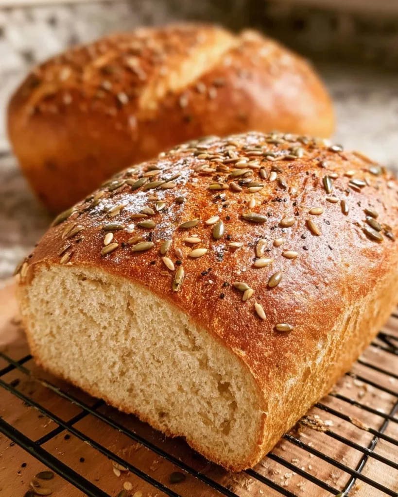 Once baked, remove the bread from the pans immediately. Let them cool completely on a wire rack before slicing. The aroma? Heavenly! Your Multi-Seed Honey Wheat Bread is ready to shine on your table.