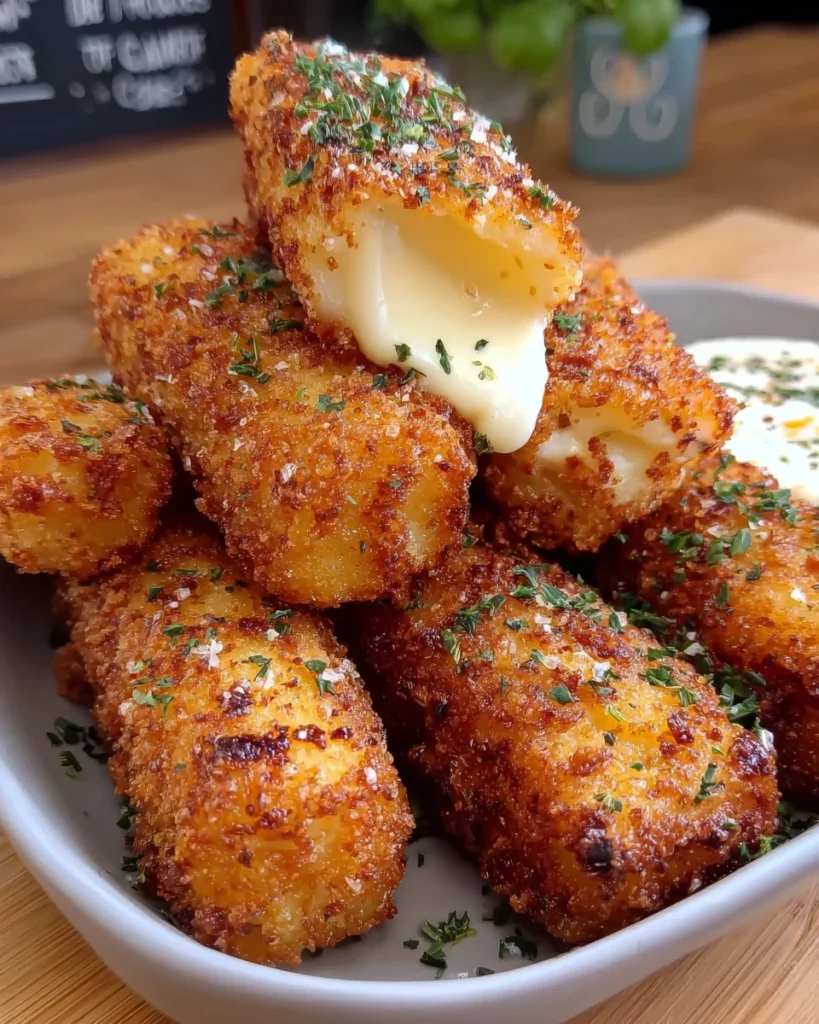 - Double breading creates an extra crispy coating that holds the cheese inside perfectly.