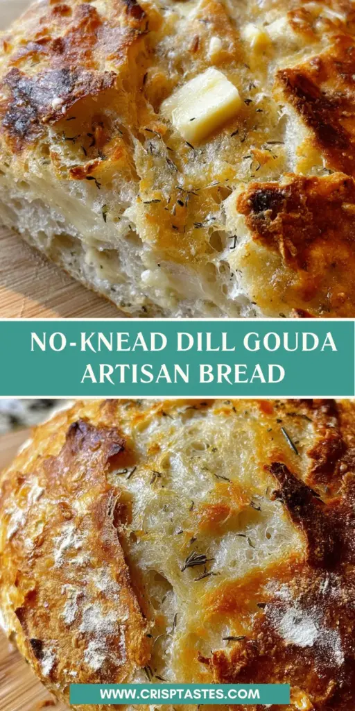 Baking No-Knead Dill Gouda Artisan Bread is like inviting warmth and comfort into your home. With its beautiful crust and gooey cheese pockets, this bread is not just food; it’s an experience that brings families together. The aroma wafting through your kitchen will make everyone’s heart flutter with anticipation. Plus, with such an effortless method, even your busiest days can end with something truly special. So, roll up your sleeves and give it a try! I promise, you’ll find joy in every slice and create cherished memories with those you love.