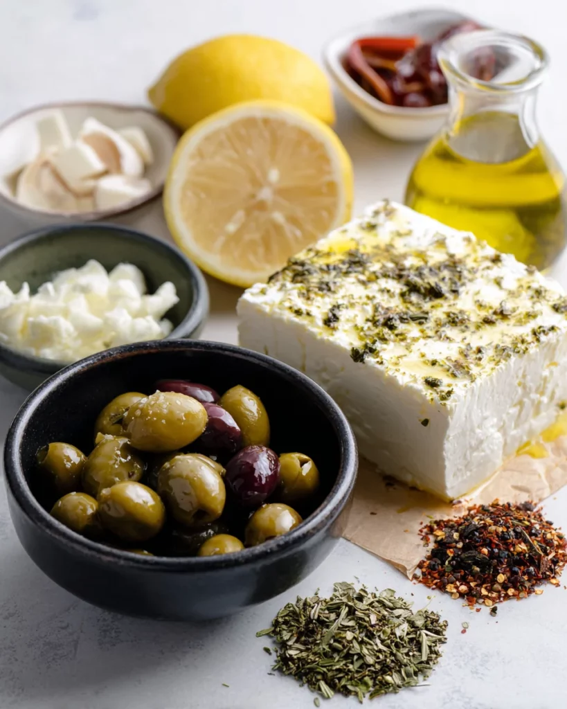 Feta: Choose block feta in brine rather than pre-crumbled. It’s creamier, tangier, and blends more smoothly. A Greek or Bulgarian feta adds the right salty tang without overpowering the olives.